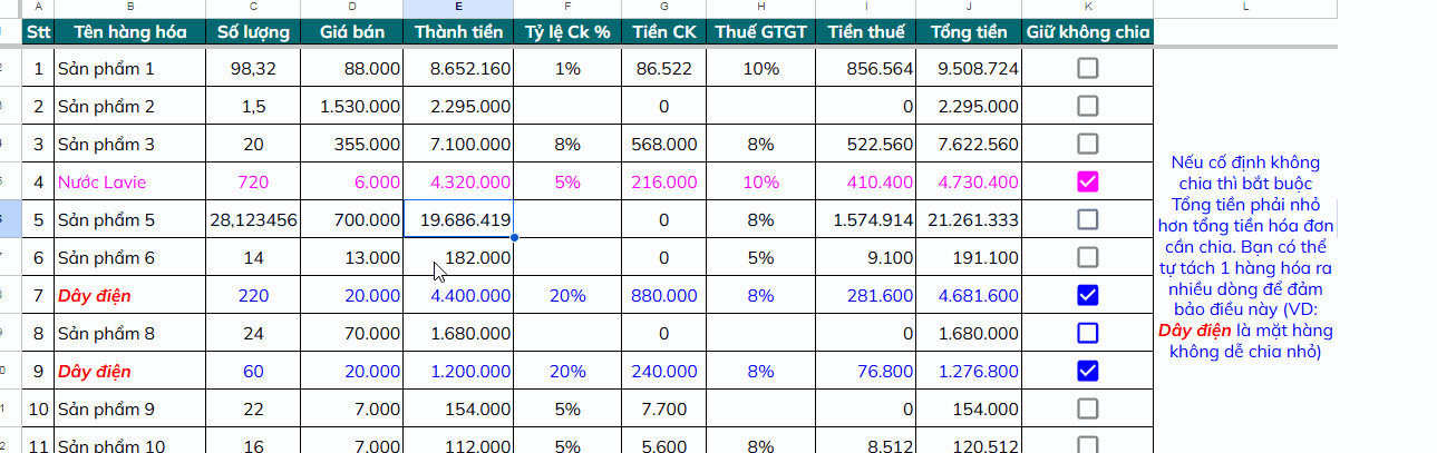 Cách chia nhỏ hóa đơn để thanh toán tiền mặt dưới 5 triệu đồng