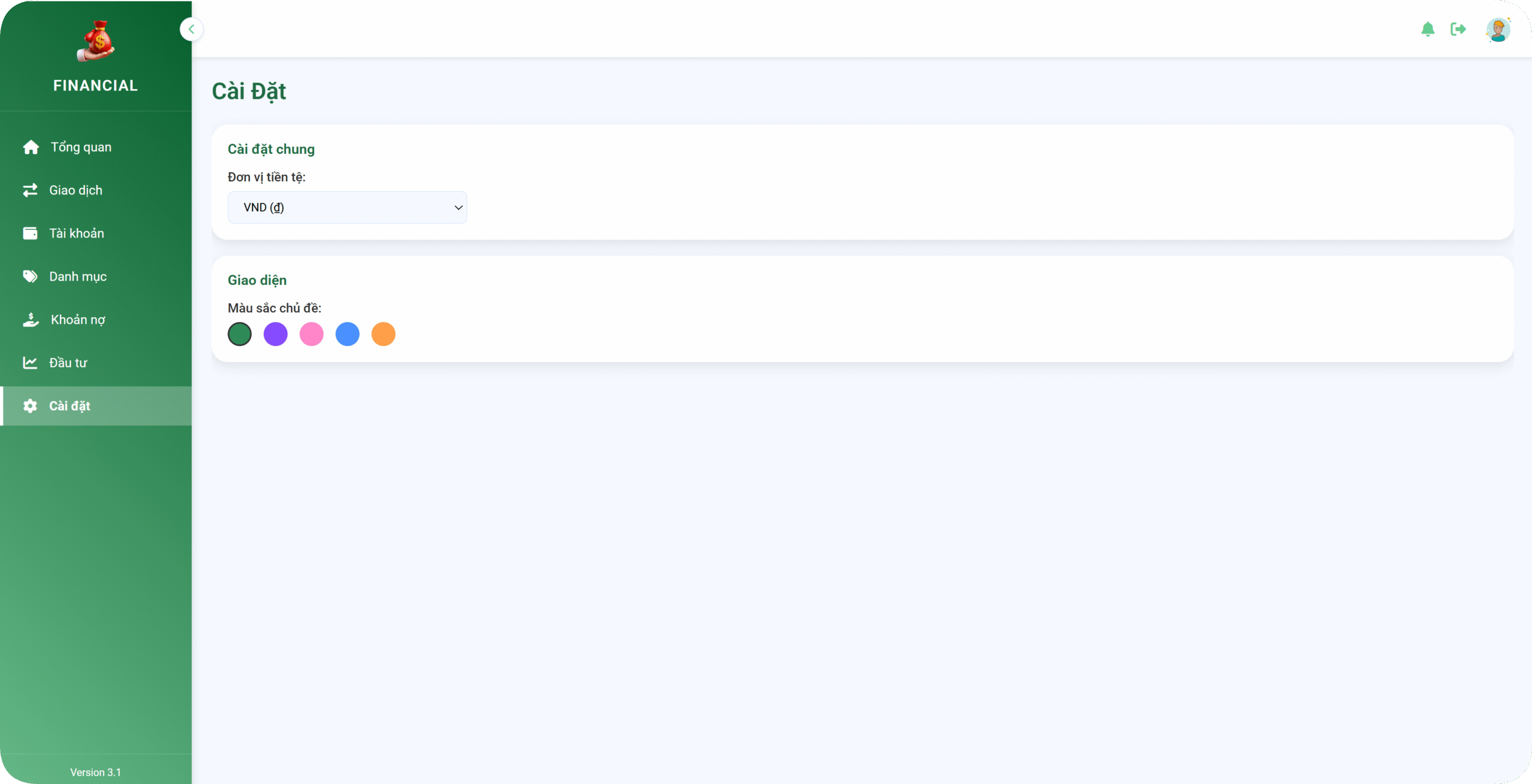 - 🎨 Tuỳ chỉnh giao diện: đổi đơn vị tiền & màu chủ đề.
