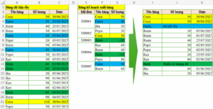 - Sản phẩm Coca: tồn trong 2 ngày là 50, 110. Cần xuất tổng 80. Vậy tồn ngày 30/04 sẽ cần phải ưu tiên xuất trước. Vậy sẽ còn tồn ngày 30/04 là 110 – 80 = 30, và ngày 30/06 là 50