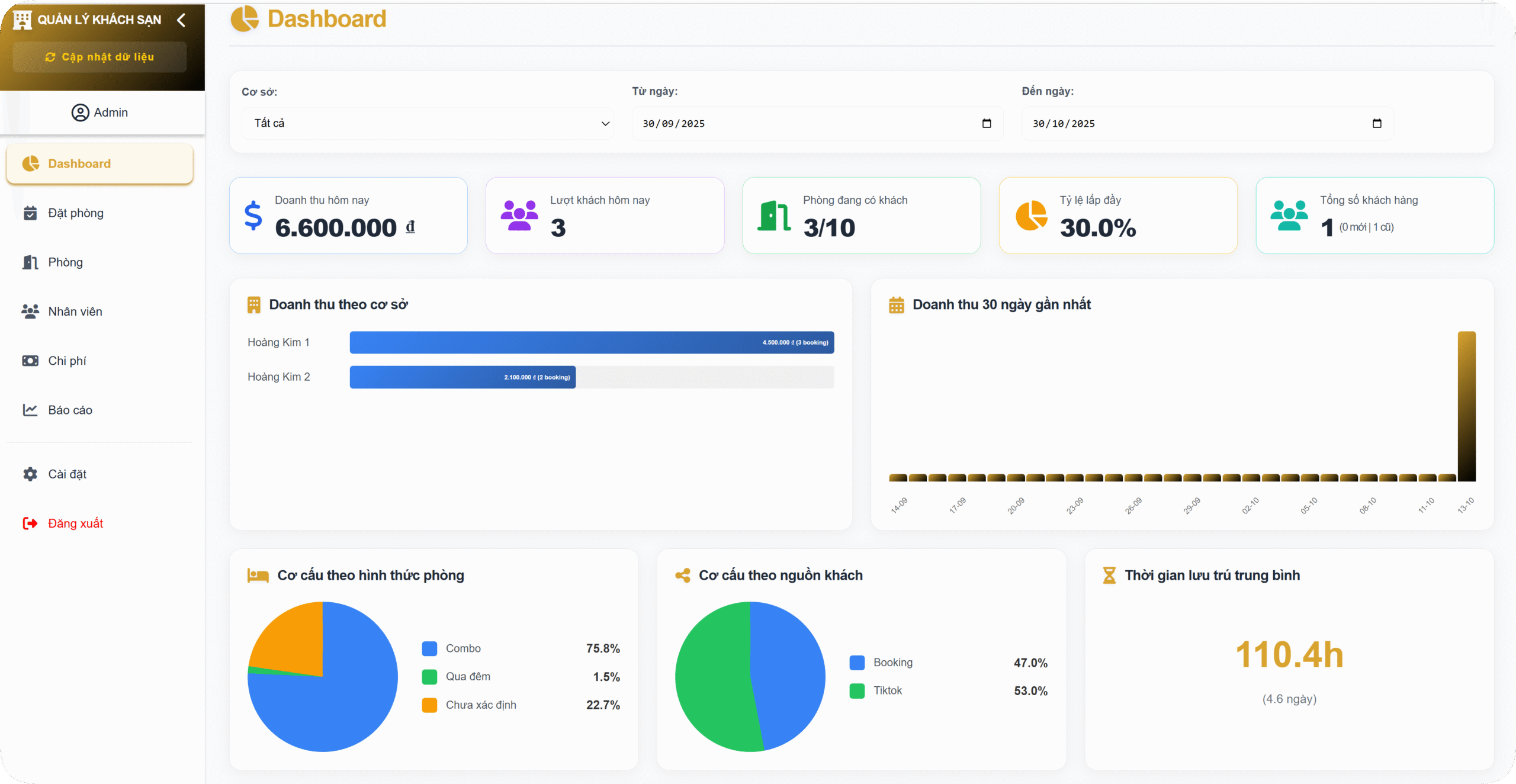 Quản lý đa cơ sở: nhiều chi nhánh, nhiều loại phòng – vẫn một tài khoản, một dashboard.